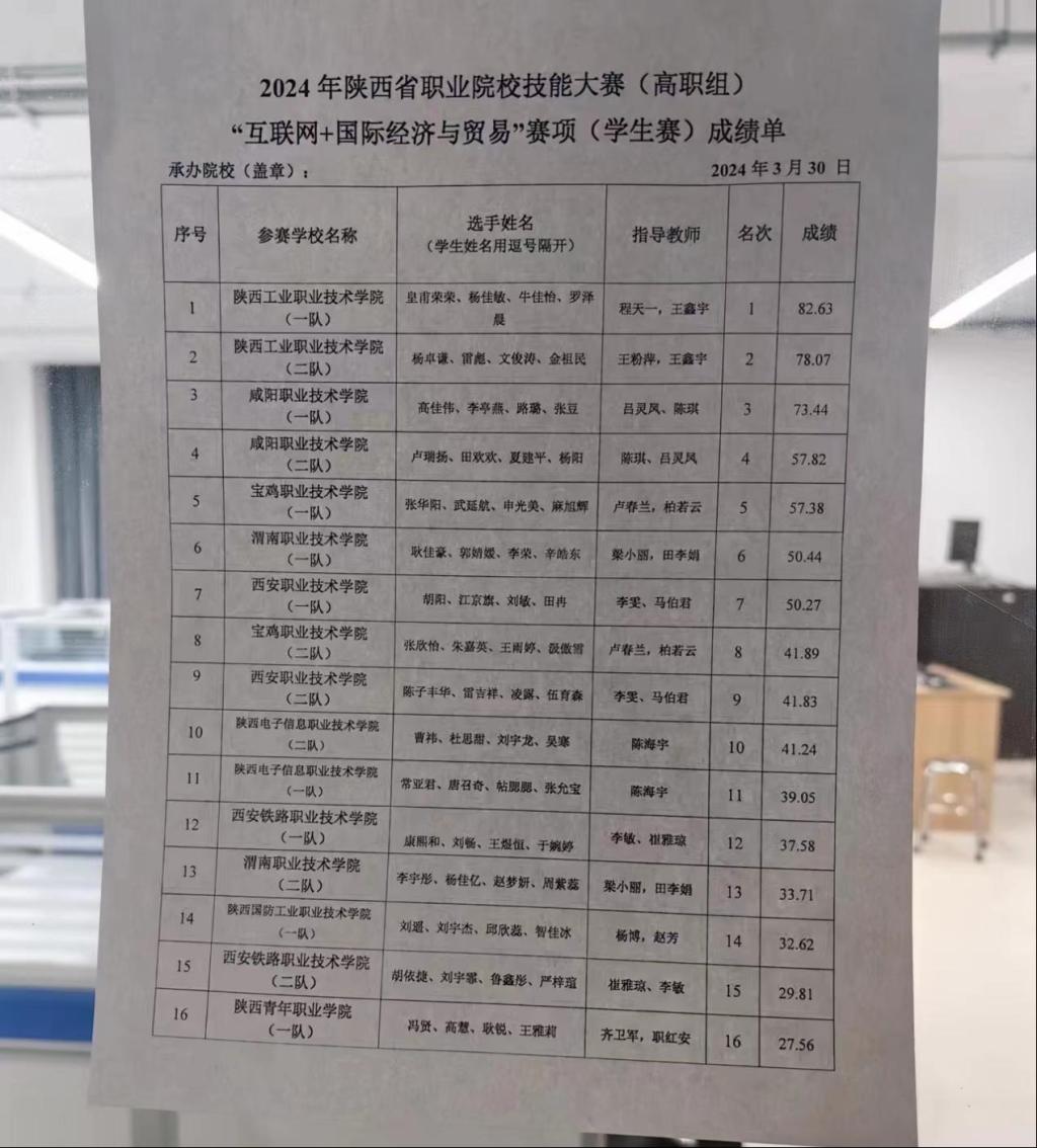 我校学生在2024年陕西省职业院校技能大赛“互联网+国际经济与贸易技能赛项”斩获佳绩