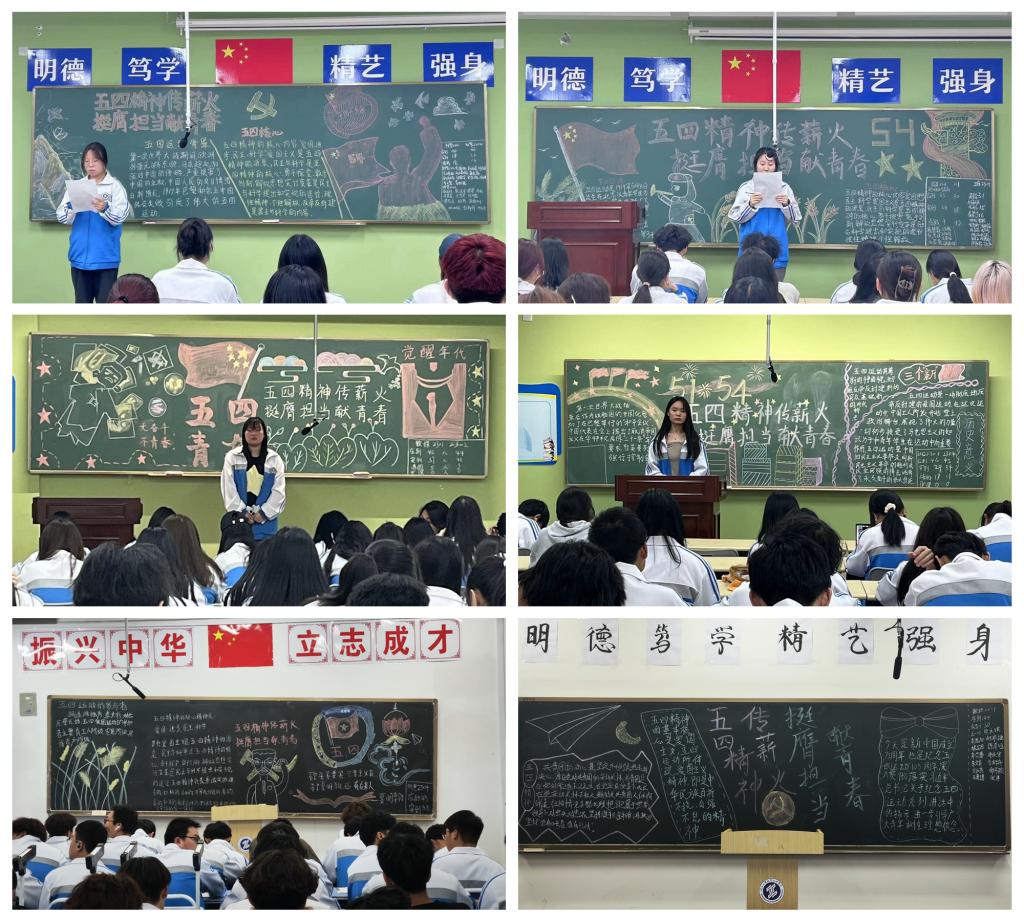 今年是新中国成立75周年,也是纪念“五四运动”105周年,为深入贯彻落实习近平总书记关于纪念五四运动系列讲话中的指示,进一步引导广大青年树立理想信念,传承和弘扬五四精神,激发青年的爱国热情、锻造民族品格,营造浓厚五四青年节氛围。4月24日晚自习,校团委制定活动方案,在各二级学院团总支精心组织策划下,全校各班团支部开展了“五四精神传薪火 挺膺担当献青春”主题团日活动。