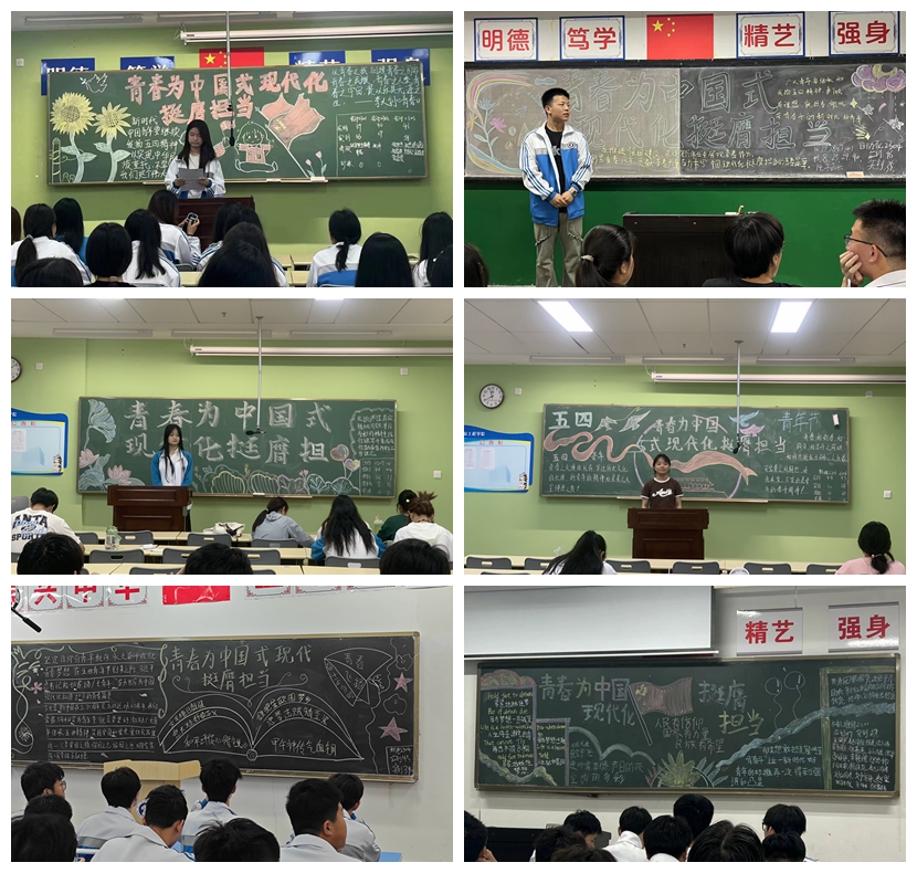 为学习贯彻习近平总书记五四重要寄语精神,引导和激励广大团员青年继承和弘扬五四精神,坚定不移听党话、跟党走,争做有理想、敢担当、能吃苦、肯奋斗的新时代好青年,在推进强国建设、民族复兴伟业中展现青春作为、彰显青春风采、贡献青春力量,奋力书写为中国式现代化挺膺担当的青春篇章。5月9日晚自习,校团委制定活动方案,在各二级学院团总支精心组织策划下,全校各班团支部开展了“青春为中国式现代化挺膺担当”主题团日活动。
