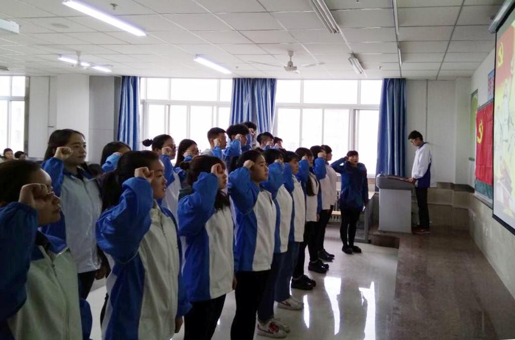 在郝平同志宣读党委组织部关于接收预备党员的审批意见后,20名新党员进行了入党宣誓,宣誓过程庄严凝重,表达了他们对党最真挚的情感。随后,新发展党员代表,积极分子代表分别发言。孙继龙同志代表工商学院党总支全体党员向新党员们表示了热烈祝贺,并《党章》第一章第六条为题,“从牢记入党誓词,不忘初心,撸起袖子加油干”三方面结合具体实例,给参会党员讲述了一堂生动的党课。深入浅出的阐明了入党就意味着责任与使命,意味着拼搏与奋斗。