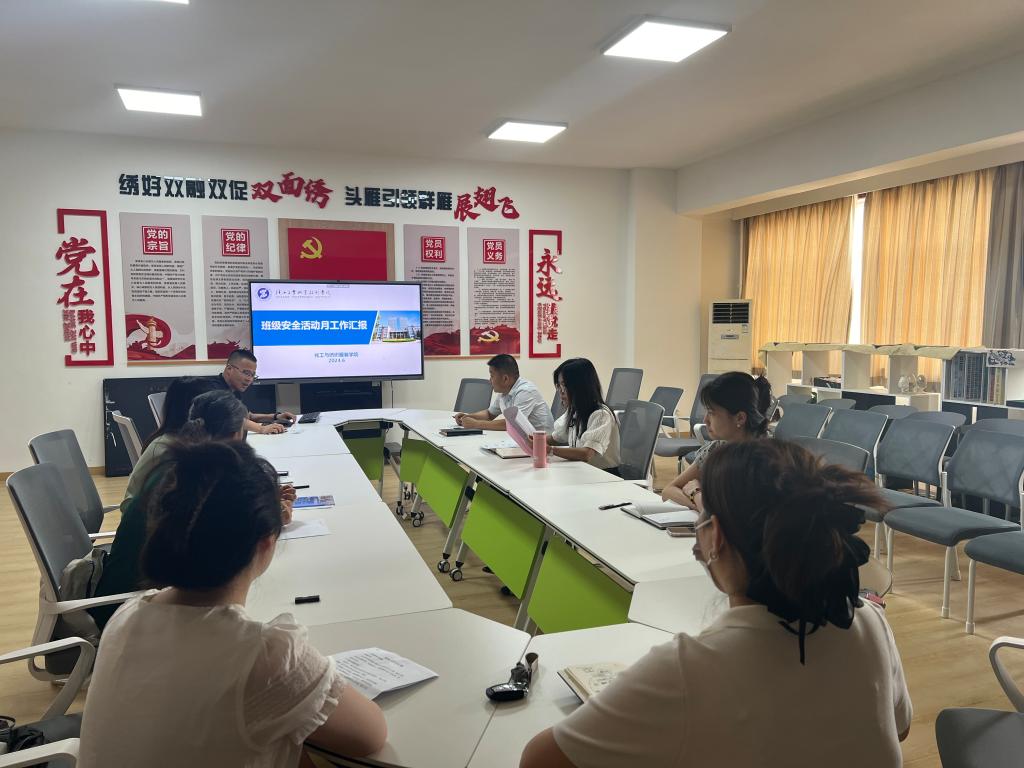 为夯实2024年学生公寓“安全卫生月”活动,6月20日下午,化工与纺织服装学院组织各班主任进行了安全活动月工作汇报。党总支书记杨修国、院长刘迪、学工办主任王飞龙、教学办主任赵伟、全体辅导员及班主任参会。