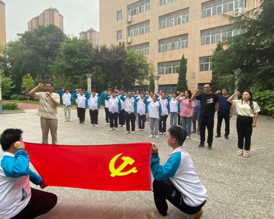 7月3日,机械工程学院学生第一党支部在王达成广场举行新党员入党宣誓仪式,32名新党员和支部全体党员参加宣誓仪式,仪式由支部书记张党清主持,总支组织委员何瑾代表总支讲话。