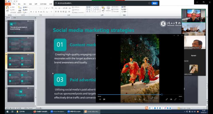 主讲教师李思维分别从品牌价值介绍、品牌价值的重要性、数字营销和社交媒体营销对品牌建设的作用等角度展开讲述,并结合电子商务专业近年来的科学研究、校企合作和乡村振兴经验,为印尼巴厘理工学院师生梳理了品牌价值建设的思路、路径和注意事项,并就中国知名品牌小米、海底捞和著名跨境品牌SHEIN的品牌建设历程进行了案例分析讲解,引起了师生们的极大兴趣。同时,讲座积极发挥对外传播效能,在课程内容中融入了中华优秀传统文化和习俗科普,向印尼巴厘理工学院师生展示了中国传统文化与民族品牌的融合共生。在介绍内容营销时,李思维老师展示的中国传统婚服案例一度将讲座气氛推向高潮。