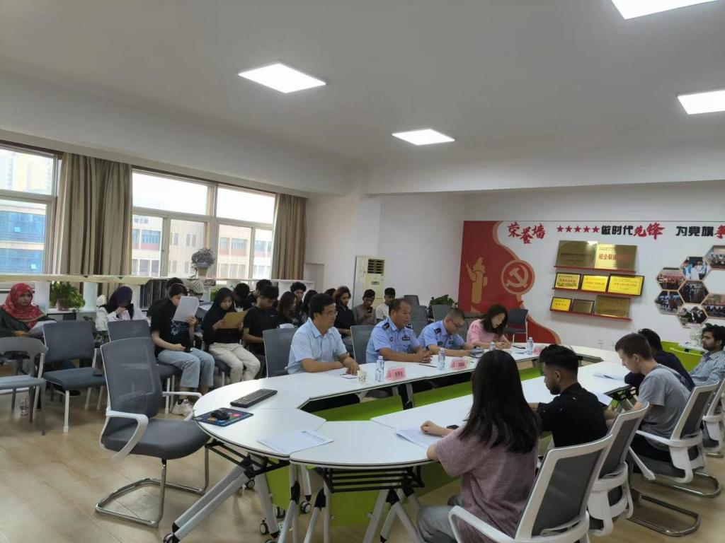 为了让留学生了解并遵守中国的法律法规,保障自身权益,促进文化融合、维护国际秩序,9月27日,国际教育学院邀请渭城区出入境支队队长程靖涛和干警王佳来校,为在校留学生举办了一场法制教育讲座。