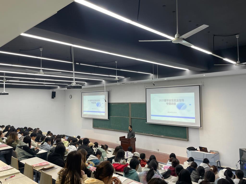 为进一步推进就业工作,做实做细就业指导服务,促进毕业生高质量充分就业,11月14日,财经学院举办2025届毕业生就业指导专题讲座。讲座由学工办主任李友治主讲,200余名2025届毕业生参加。