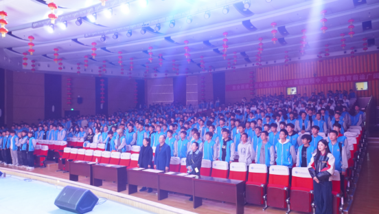 为庆祝陕西工业职业学院建校74周年,11月14日,陕西工院2024年“机械人挺膺担当”校歌红歌大家唱活动在渭城校区明德大礼堂举行,学生处副处长耿丽、机械工程学院班子成员侯涛等,辅导员、班主任代表,及2023级班级代表、2024级全体学生参加活动。