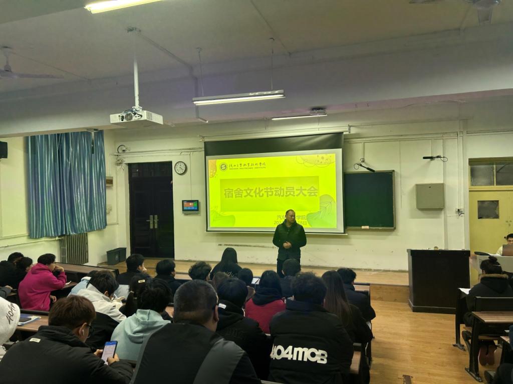 大会中,史岩峰老师重点强调了宿舍用电安全、清洁卫生、人际关系等事项,他强调:在宿舍中要与舍友团结友爱,把宿舍当做自己的家,爱护好自己的宿舍,树立健康幸福的生活理念,营造积极向上的宿舍文化生活。