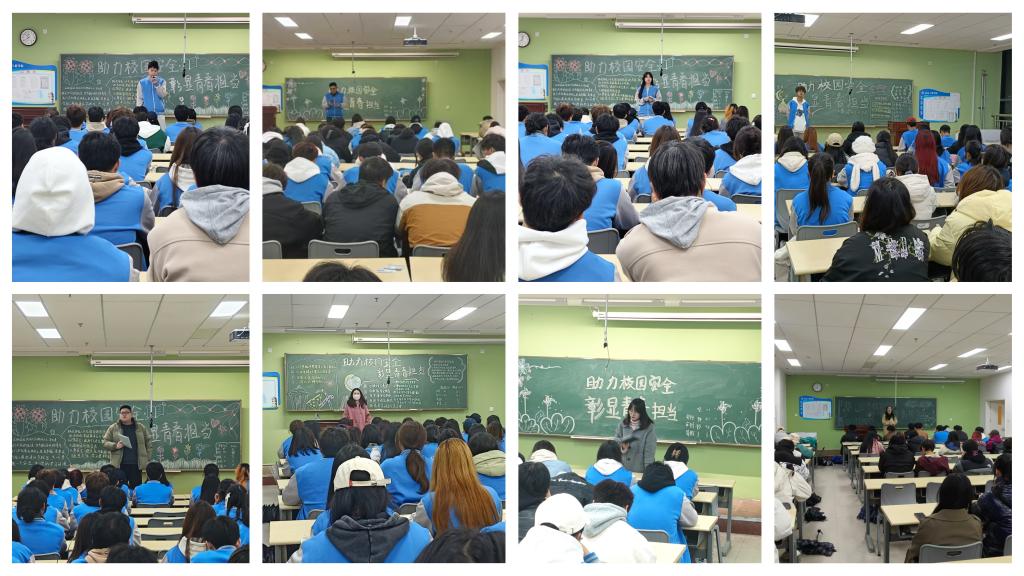 班会中,各班辅导员、班主任组织本班班干部依次上台,围绕构建和谐班级、宿舍消防安全、遵守校纪校规等3个方面进行宣讲,全面传达了11月21日学生处组织开展的安全主题培训会议内容,呼吁同学们在日常学习生活中团结友爱、在宿舍消防安全中提高警惕、在遵守校纪校规上严守底线。随后,各班集中观看了校园安全大讲堂相关视频,提高校园安全意识。最后,各班主任带领同学们学习了校园安全、宿舍安全等方面的各项规定,进一步从制度上对同学们进行约束,强化同学们的纪律性。