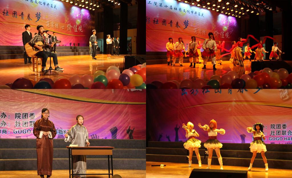 演出在舞蹈《疯狂的女孩》中拉开序幕。整场晚会节目编排新颖,形式多样,融歌曲、舞蹈、相声、小品、器乐、等多种表演于一体,亮点频频令人耳目一新,而《演员》以及动漫社带来的《CUTIE PANTHER》表演情感丰富,精彩万分。武术协会以高难度的动作表演,给台下观众带来一波波强烈的视觉冲击,《蚁族》诠释了现在许许多多人的现实问题,引发现场观众的内心共鸣,获得一致好评。健美操协会的舞蹈《舞动青春》和吉他协会的吉他弹唱《坚强的理由》将整个活动的气氛推向高潮,台上台下成融成了激情四溢的海洋。美好的时光总是短暂的,开幕式在大学生艺术团带来的舞蹈《民族瑶》中完美落幕。