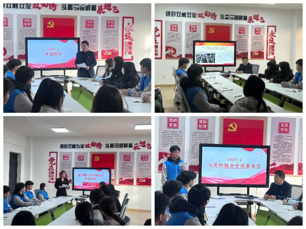为深入学习贯彻党的二十大精神,加强入党积极分子教育培育,引导入党积极分子端正入党动机、坚定理想信念,12月13日下午,化工与纺织服装学院在崇文楼806举行第70期入党积极分子培训班开班仪式。化工与纺织服装学院党总支书记杨修国、学生党支部书记曹淼及2024年下半年入党积极分子参加了本次开班仪式暨党课第一讲。