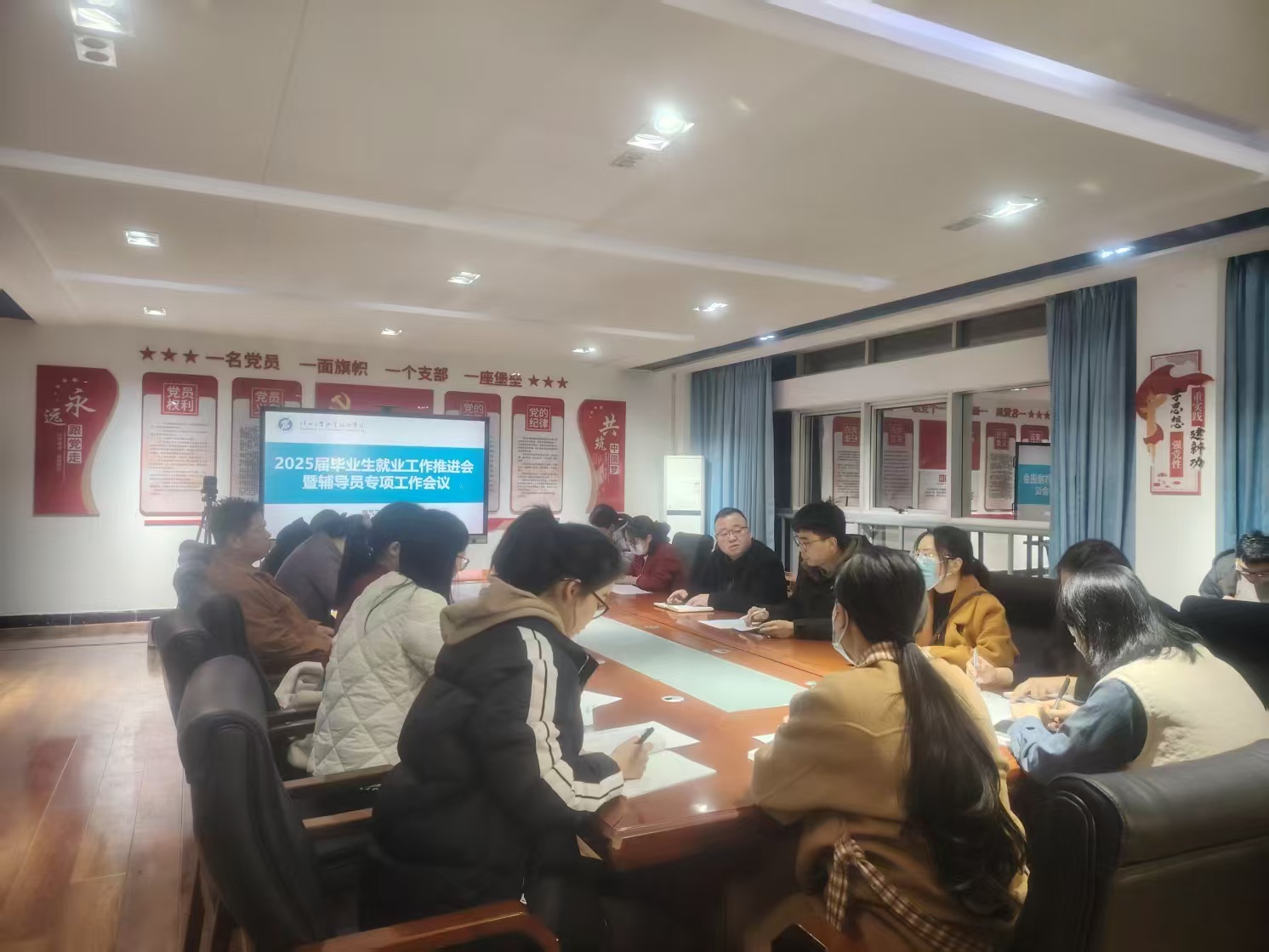 为进一步推进2025届毕业生就业工作,3月10日晚,电气学院党总支书记刘其兵、全体辅导员、22级班主任在行知楼A506召开就业专项会议,会议由电气学工办主任陈春山主持。