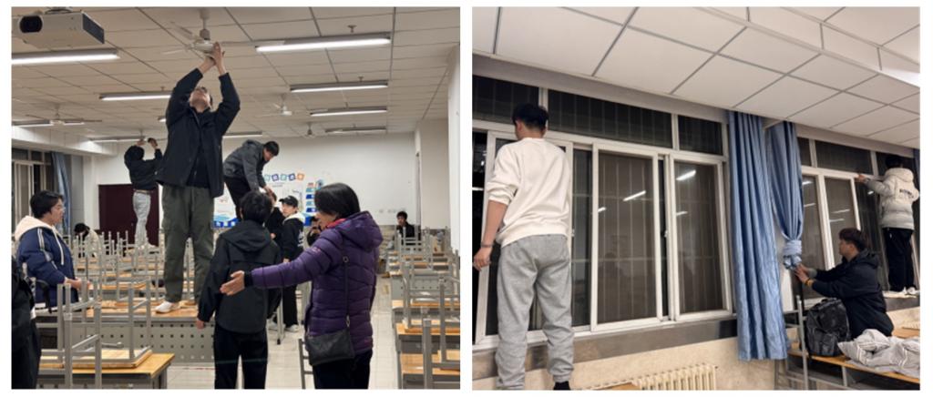 各班对照教室、宿舍卫生要求标准,认真组织打扫,针对教室墙面、墙角、暖气片缝隙,宿舍墙角、地面,门头门缝、洗手台等各处卫生死角展开彻底清理打扫。清扫过程中班主任、辅导员们亲自上阵,带领学生共同打扫,现场指导学生如何清理、如何收纳、如何整理床铺等,教室和宿舍环境有了很大提升。