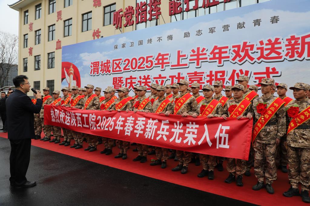阳春三月送新兵,扬帆起航踏征程。我校53名学生顺利通过咸阳市渭城区人民政府征兵办公室审批应征入伍。3月14日下午,53名应征入伍学生在渭城区武装部操场集中参加咸阳市渭城区2025年春季新兵入伍欢送仪式。我校学生处处长兼征兵工作站站长郝军、征兵工作站相关教师、全体应征入伍新兵及新兵家长代表参加欢送仪式。