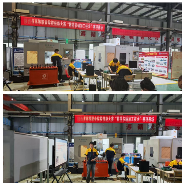 首先,数控多轴加工技术赛项参赛学生小组根据2025年陕西省职业院校技能大赛规程,进行了为期1小时的技能展示与讲解。参赛学生熟练的操作能力和扎实的理论知识,展示了良好的备赛成效,赢得了在场专家与指导老师的一致认可。
