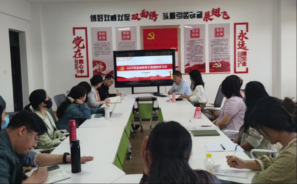 最后,党员教师们围绕学习内容展开了热烈的交流讨论,参会党员教师纷纷表示,将以全省教育大会精神为指引,立足本职岗位,努力工作,为推动学校教育事业高质量发展、为培养德智体美劳全面发展的社会主义建设者和接班人而不懈奋斗。