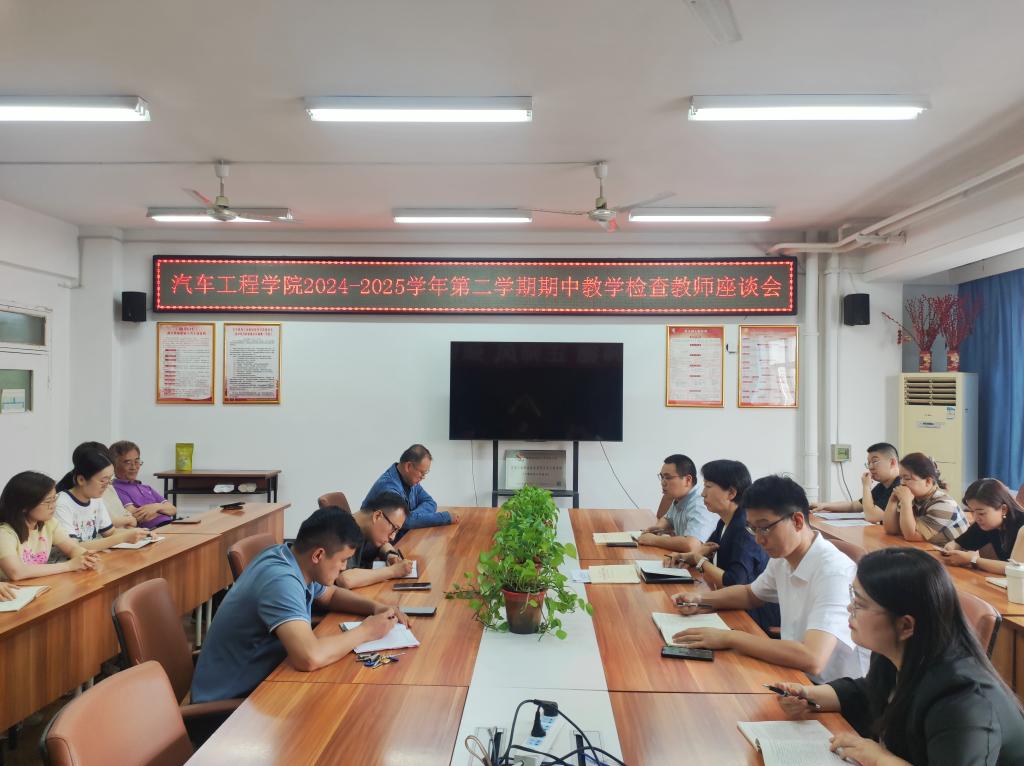 根据陕工院教字〔2025〕7 号《关于做好2024-2025学年第二学期期中教学检查工作的通知》安排,5月15日下午,汽车工程学院组织全体教师在崇文楼六楼会议室召开了2024-2025学年第二学期期中教学检查教师座谈会。座谈会由汽车工程学院副院长许冀阳主持。