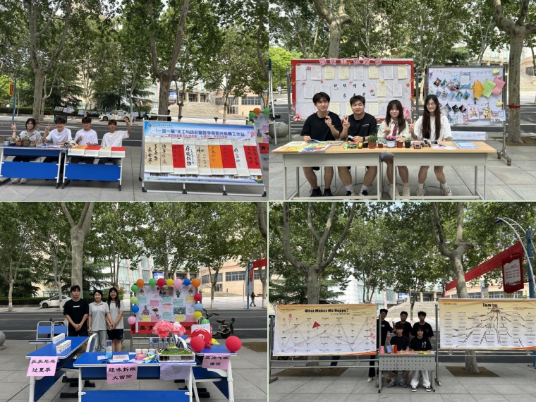 活动现场分为“签到打卡区”“一站一品展示区”“五育润心活动区”三大区域。在“签到打卡区”,同学们通过签名或画手印的方式完成签到,并领取“通关文牒”参与后续活动;“一站一品展示区”展示了各二级学院精心制作的心理主题展板以及现场互动小游戏,内容丰富,形式多样;“五育润心活动区”则围绕德、智、体、美、劳五大主题,设计了多项趣味心理游戏,让学生在游戏中感受五育融合的魅力。在“德润心田”活动区,同学们在“情绪飞行棋”中通过双脚跳跃释放压力,在“一穿到底”团队游戏中体验协作的快乐;“智启心灵”活动区的“超级汉诺塔”和“心灵迷宫”游戏挑战了同学们的逻辑思维与团队默契;“体健心晴”活动区在渭城和经开校区分别设置了“大脚板”“一箭倾心”投壶活动,让同学们在运动中收获团队协作的品质和快乐;“美育心窗”活动区的曼陀罗绘画和“自然疗愈九宫格”探索活动,引导同学们用艺术和自然疗愈心灵;最受欢迎的要数“劳筑心桥”活动区的非遗漆画书签DIY,同学们排起长队,迫不及待地想亲手制作属于自己的书签,大家小心翼翼地运用漂漆工艺,创作出独一无二的属于自己的艺术品。