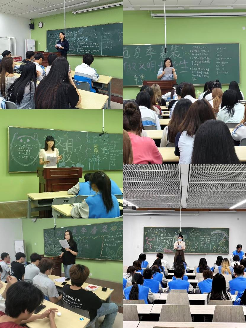 班会中,各班班主任结合专业对职业形象的要求,通过案例分析、情景讲解等形式,深入浅出地讲解了得体着装对塑造个人形象、增强职业素养的重要意义。重点围绕夏季着装中存在的常见问题,明确提出不得穿着拖鞋、过度暴露服装,不提倡染非主流颜色头发等行为,引导学生增强审美判断力和行为规范意识。同时,各班围绕“夏季如何穿出文明与风采”主题组织学生开展交流讨论,鼓励大家从自身做起,积极传递文明风尚,自觉践行健康、得体、简约的着装理念,展现新时代大学生良好的精神风貌。