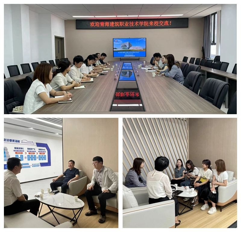 双方在崇理楼D504会议室开展座谈,会议由何奇彦院长主持。首先何奇彦院长对调研团队的到来表示热烈欢迎。随后双方共同观看了乐游棋牌宣传片《红色匠心》。王智强副书记对我校的办学理念、经验和所取成绩等进行了肯定,对乐游棋牌的热情接待表示感谢,并介绍了青海建筑职业技术学院的发展历程、师资队伍、专业开设等情况及此次调研交流目的。何奇彦院长从学校发展历程、开设专业、财经与旅游学院概况以及大数据与会计专业目前的改革方向、如何与产业接轨、如何岗课赛证融通等方面作了详细介绍。杨谦院长则对土木工程学院概况、开设专业、师资队伍建设以及当前背景下土建类、测绘类专业转型做法等方面进行了具体介绍。