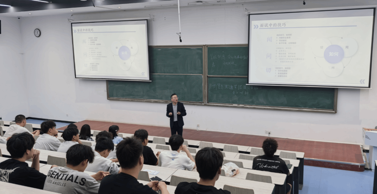 在讲座的核心部分,许伟涛经理详细拆解了面试礼仪的各个环节。他围绕“翼展职场” 的主题,系统讲解了从面试前的充分准备(信息了解、心理调适)、面试中的核心表现(得体的着装仪容、自信的肢体语言、专业的语言表达、积极的互动沟通),到面试后的得体跟进等全流程礼仪规范。许经理特别结合航空服务业及现代商贸流通领域企业的实际招聘案例,深入浅出地分析了常见面试场景中礼仪运用的要点与误区,并分享了如何通过细节管理展现职业潜力、化解紧张情绪、有效传递个人价值的实用技巧。互动环节气氛热烈。学生们围绕面试着装的具体要求、线上面试的注意事项、如何巧妙回答棘手问题、不同企业文化下的礼仪差异等求职过程中普遍关心的问题踊跃提问。许伟涛经理结合自身丰富的招聘和管理经验,逐一给予了专业、细致的解答,并鼓励学生们在校期间积极锻炼沟通表达能力,培养职业化思维,提前为未来职场竞争做好准备。