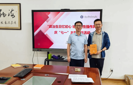 为庆祝中国共产党成立104周年,强化党员党性修养,激励党员干部以优良作风践行初心使命,6月30日下午,材料工程学院教师党支部在行知E楼511会议室开展“政治生日忆初心,锤炼党性强作风”主题党日活动,为28名党员教师集体过“政治生日”,重温入党初心,接受党性教育。活动由材料学院教师支部书记侯延升主持。