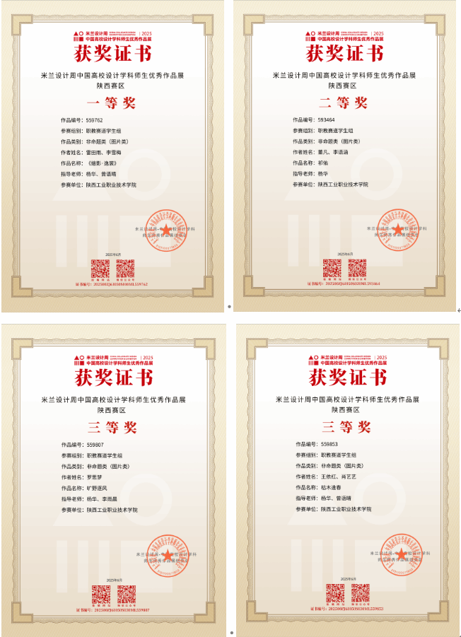 近日,第九届“米兰设计周中国高校设计学科师生优秀作品展”职教赛道陕西省赛区评选结果揭晓,化工与纺织服装学院服装与服饰设计专业学生雷田雨等7位同学的服装设计作品在比赛中获得一等奖1项、二等奖1项、三等奖2项的佳绩。