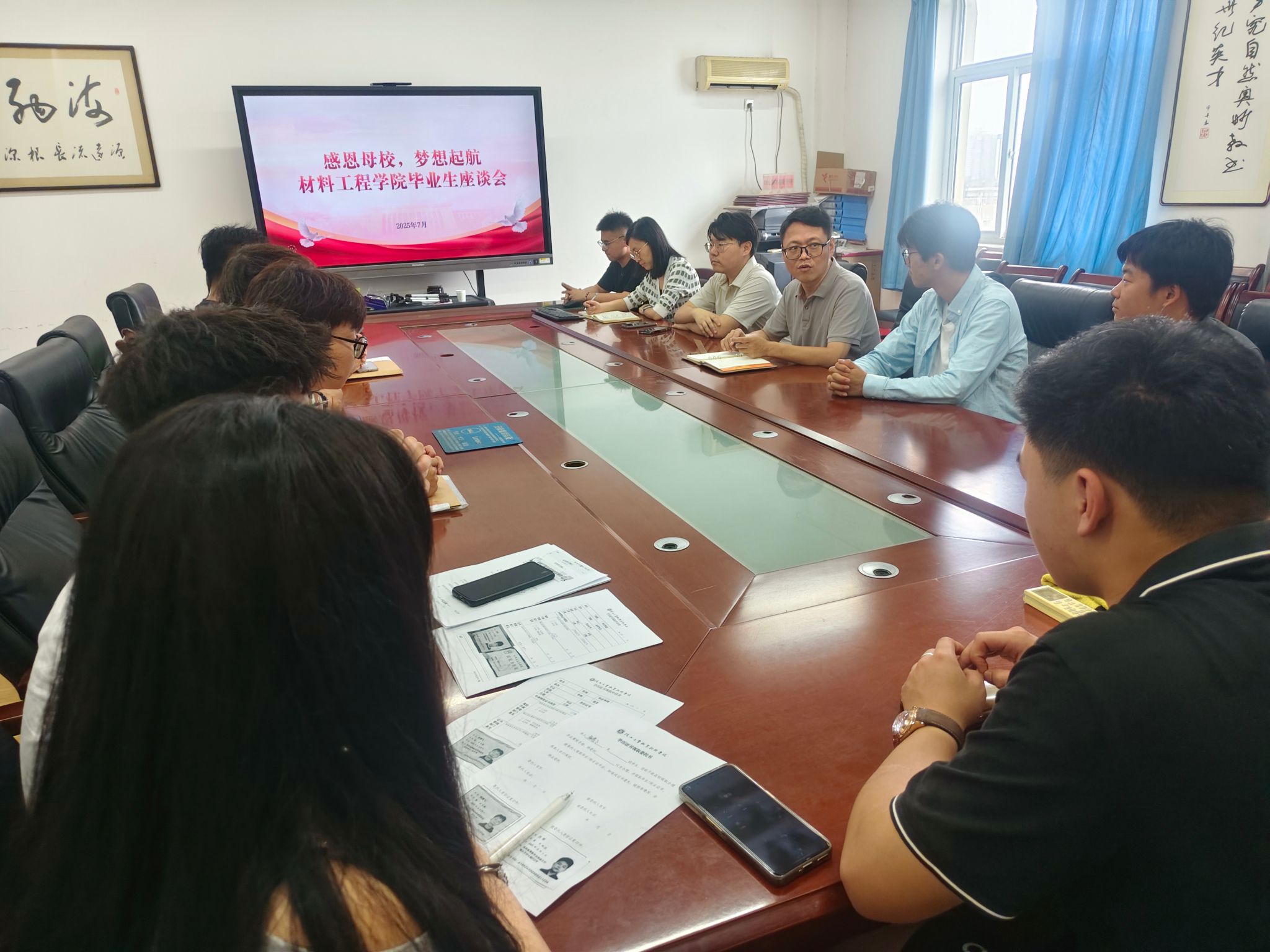 7月3日,材料工程学院在行知五楼会议室举行2025届毕业生座谈会。材料工程学院党总支书记郝平、学工办主任王昊及部分班主任代表、毕业生代表参加。
