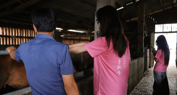在香山村党群服务中心的精心安排下,实践团队顺利抵达合兴养殖农民专业合作社。这里,群山环抱,牧草丰盈,为黄牛养殖提供了得天独厚的条件。刘场长,一位有着丰富养殖经验的合作社负责人,热情接待了师生们。他介绍道:“香山村黄牛以肉质鲜美著称,但受限于销售渠道,其经济价值未能充分发掘。”面对这一现状,团队成员们迅速行动,他们深入牛舍,观察黄牛养殖环境,与农户深入交流,了解养殖技术、饲料配比及市场销售等关键环节。