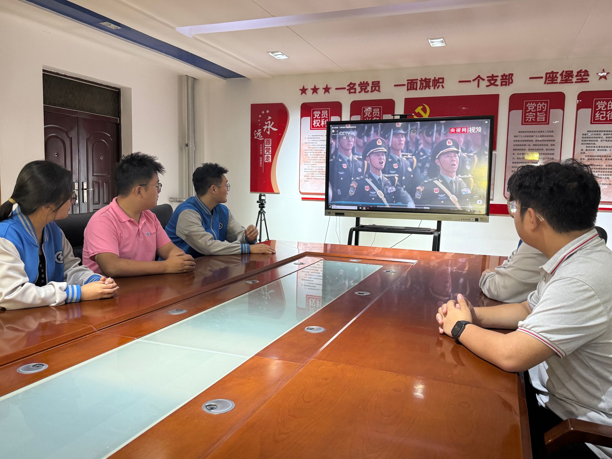 活动分两部分进行,同学们首先共同观看九三阅兵式的精彩片段,从整齐划一、气势磅礴的受阅方队,到展示我国工业科技实力的新式武器装备方阵,无一不让同学们心潮澎湃。观看结束后,研讨环节热烈展开。队长岳乐成激动地分享道:“看到那些先进的装备,我深刻意识到工业技术的强大支撑作用。作为工科类学生,我们要努力学习专业知识,为工业发展添砖加瓦。”随后,大家观看抗战电影《淞沪会战》,多个战斗场景的细致描绘和众多鲜活人物的刻画,全方位展现了中国军民在这场战役中顽强抵抗、浴血奋战的英勇形象。影片中,无论是战场上奋勇杀敌的将士,还是后方默默支持抗战的普通民众,充分彰显革命战士不屈不挠的民族精神和爱国情怀。队员吴永樊分享:“以前只是在书本上了解淞沪会战,今天通过电影,那些历史事件仿佛就在眼前,我才真正体会到抗战的艰难和先辈们的伟大。我们一定要珍惜现在的和平生活,努力学习,将来为国家做贡献。”