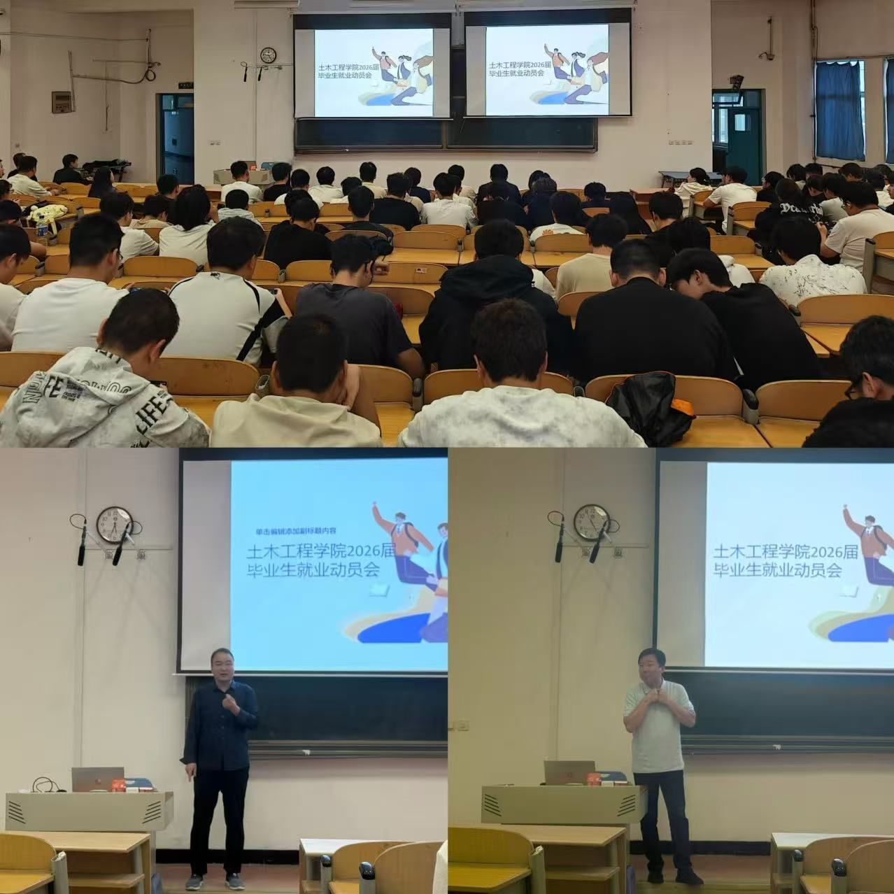 为进一步做好学院2026届毕业生就业工作,扎实推进毕业生就业指导服务,9月17日下午,土木学院在崇文西楼召开毕业生就业动员会,会议由学工办主任马俊主持,土木学院党总支书记卢文澈、院长杨谦、辅导员代表及全体2026届毕业生参会。