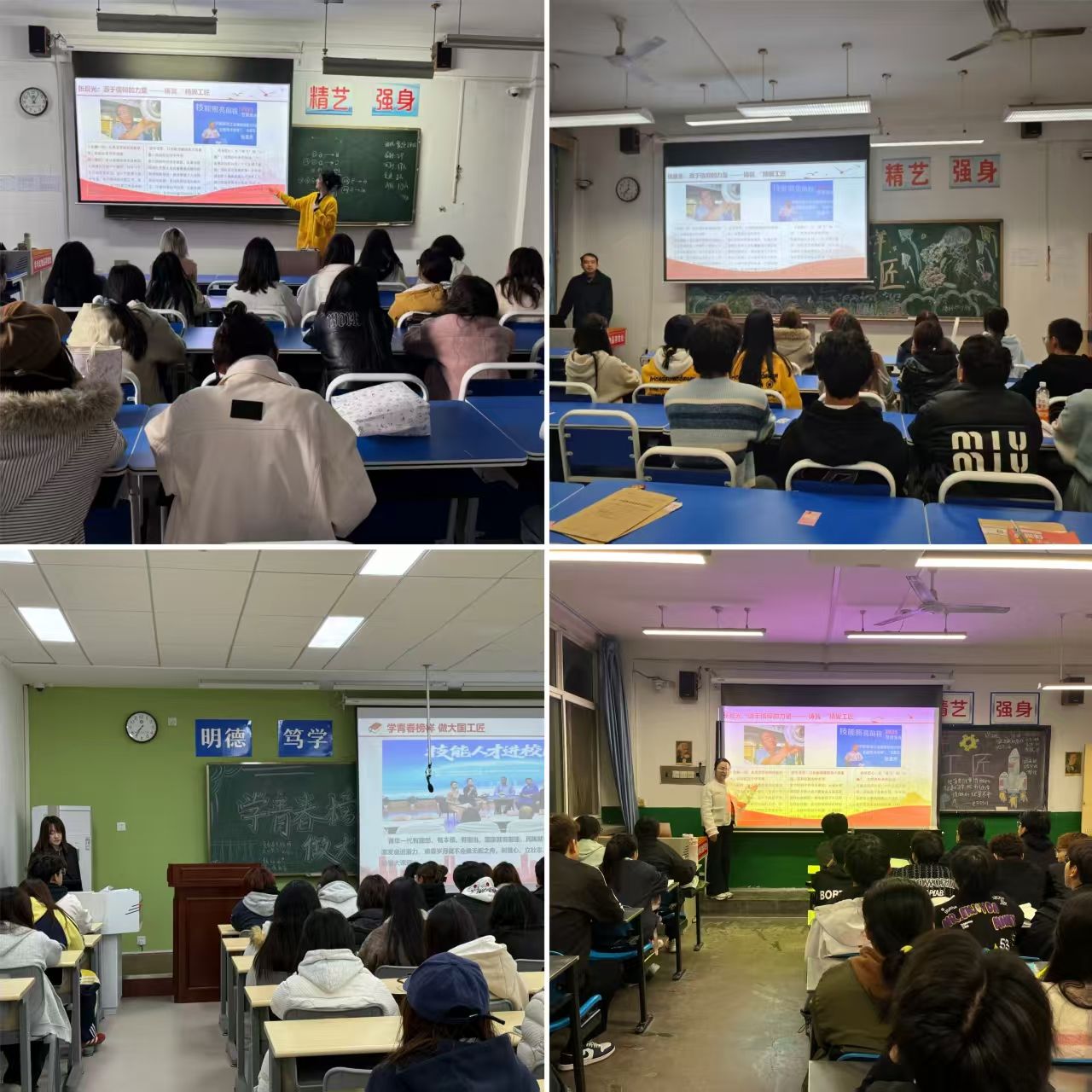 为深入学习贯彻习近平总书记关于技能人才工作的重要指示精神,推动“大思政”育人理念走深走实,引导广大青年学生坚定“技能成才、技能报国”的理想信念,10月22日晚,校团委组织2024级、2025级全体学生开展了“学青春榜样 做大国工匠”主题团日活动。思政课教师全程深入各班级,为活动提供了坚实的理论支撑和思想引领。