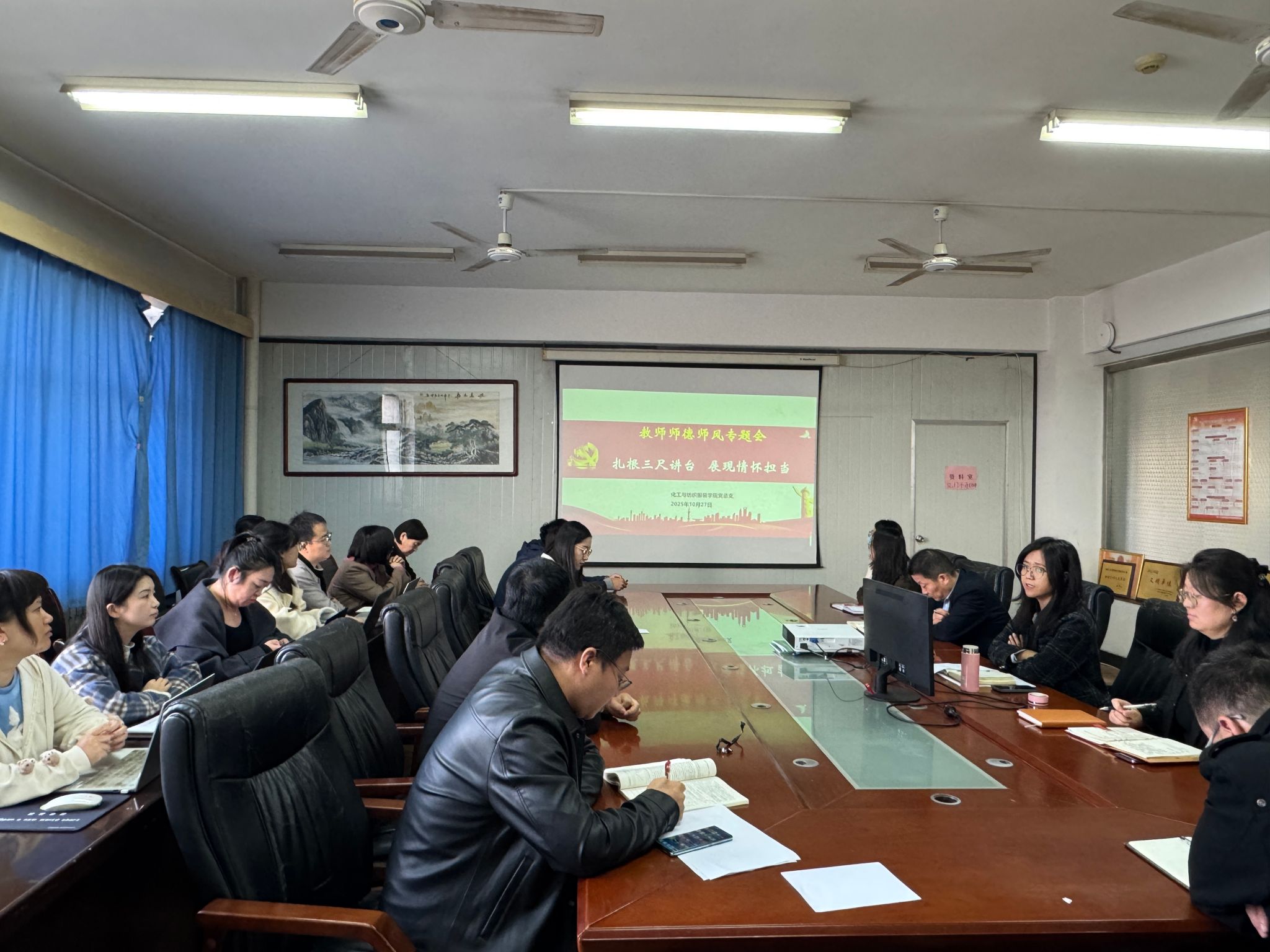 10月27日,化工与纺织服装学院在崇文楼811会议室召开师德师风专题会。会议由学院院长刘迪主持,全体教师党员齐聚一堂,深入学习习近平总书记给全国特岗教师代表的重要回信精神,共话育人初心,共担时代使命。