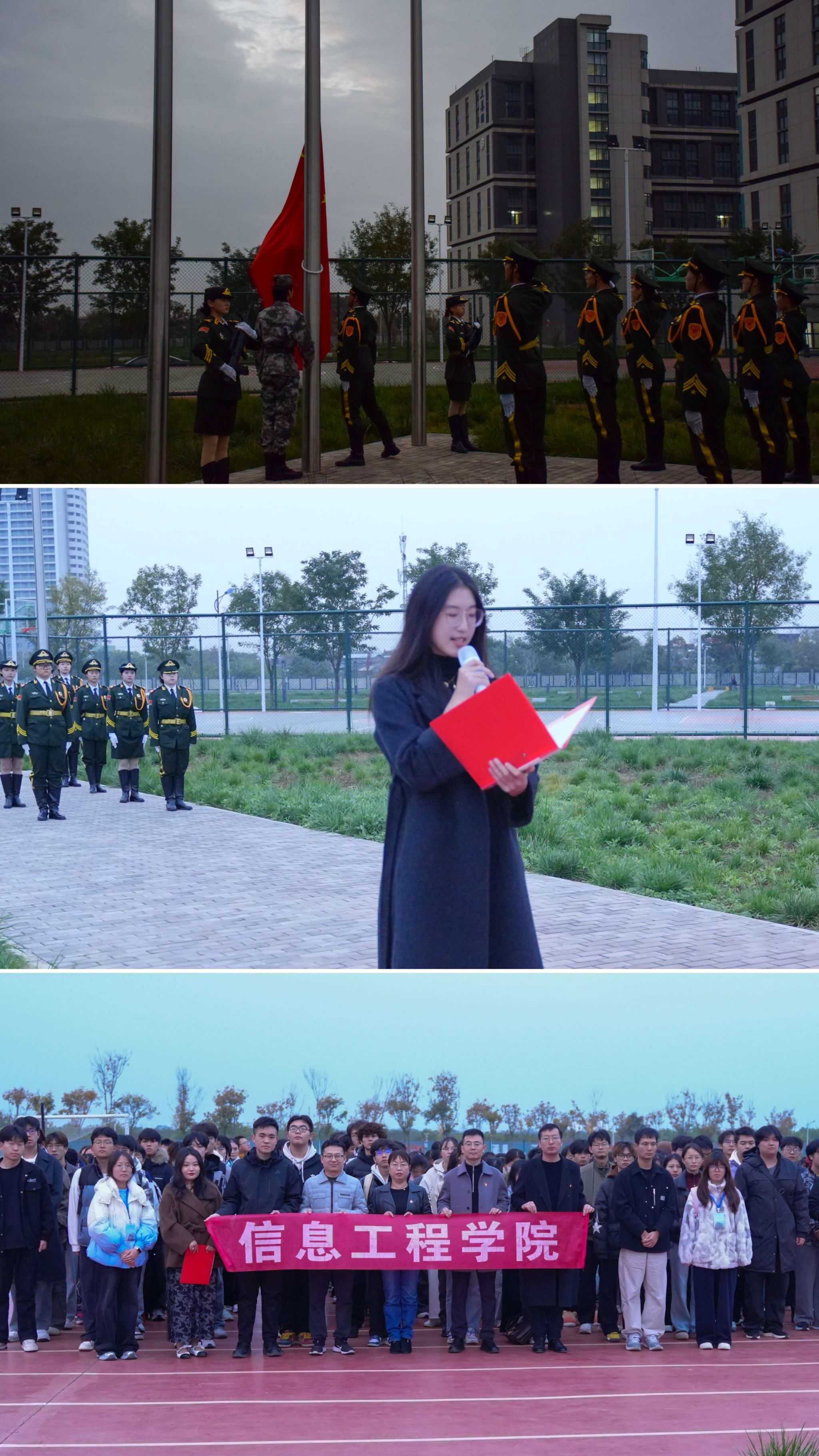 为深入贯彻落实立德树人根本任务,推动心理健康教育工作落实落细,11月10日清晨,信息工程学院在经开校区举行了以“涵养内心力量,照亮成材之路”为主题的升旗仪式。信息工程学院党总支书记王伟、党总支副书记郭新玲、学工办主任赵松、学工办辅导员及2025级学生代表参加了本次活动。