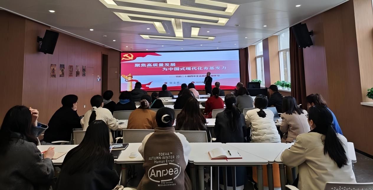 会议开始,由张金英博士作全会精神领学。张博士以“聚焦高质量发展 为中国式现代化夯基发力——党的二十届四中全会精神学习”为题,系统解读全会公报核心要义,强调全会对“十五五”时期经济社会发展的重大意义和总体要求、解读部署“十五五”时期的战略任务和重大举措。