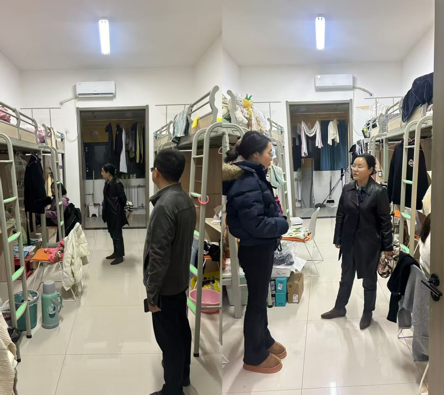 检查中,工作人员逐间核验:安全隐患排查方面,重点检查插座使用、消防通道畅通情况,未发现管制刀具与易燃易爆物品;卫生状况核查上,参照地面无杂物、床铺叠放整齐等标准,对地面有污渍、书桌杂乱的宿舍,由班主任指导整理;针对大三宿舍,逐一核实居住人数,未发现单人居住情况;同步开展谈心谈话,了解学生就业动态与心理状态。