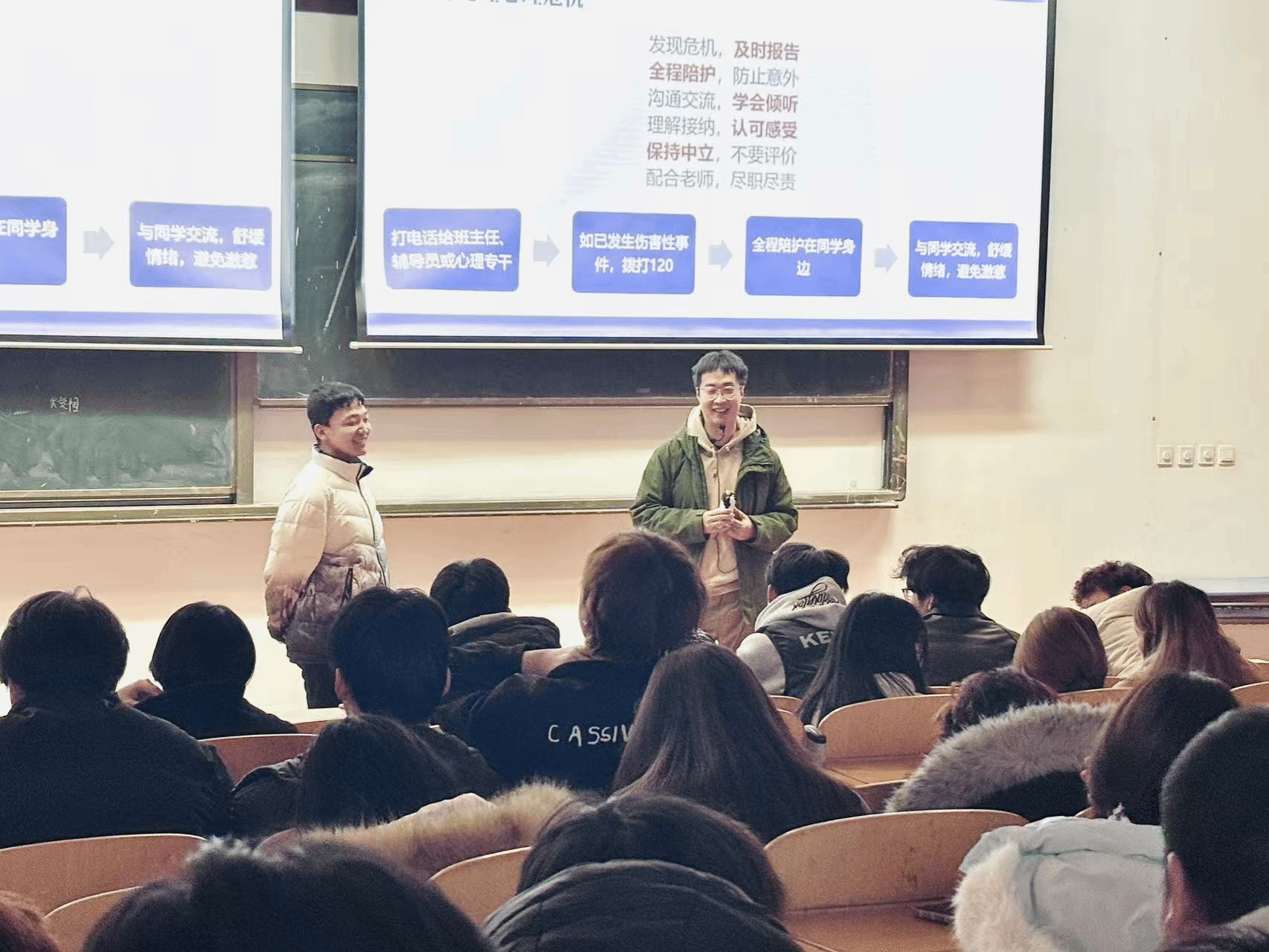 培训内容结合我校学生实际量身定制,包括了班级和宿舍心理工作“是什么”、“为什么”关注同学和自身心理健康、遇到心理危机事件“怎么办”。除理论知识外,培训教师还通过案例和现场互动介绍了心理危机的识别要点和处置方法,并耐心解答同学们提出的问题和困惑,为他们提供了实用的建议和指导。参加培训的同学表示,通过这次培训,不仅提高了自己对心理危机的认识和理解,还学到了实用的识别技巧和方法。他们将把这些知识和技能运用到实际工作中,更好地为同学们提供心理健康服务。