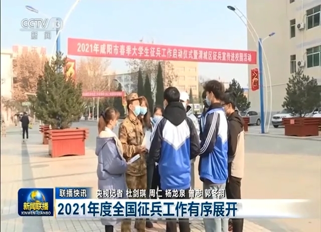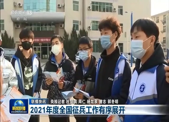 联播快讯“2021年度全国征兵工作有序展开”:今年征兵将以大学生为重点,突出各级各类学校毕业生征集,上半年征兵自2月20日开始,3月31日结束;下半年征兵自8月15日开始,9月30日结束。适龄青年自行登录“全国征兵网”,如实填写相关报名信息。