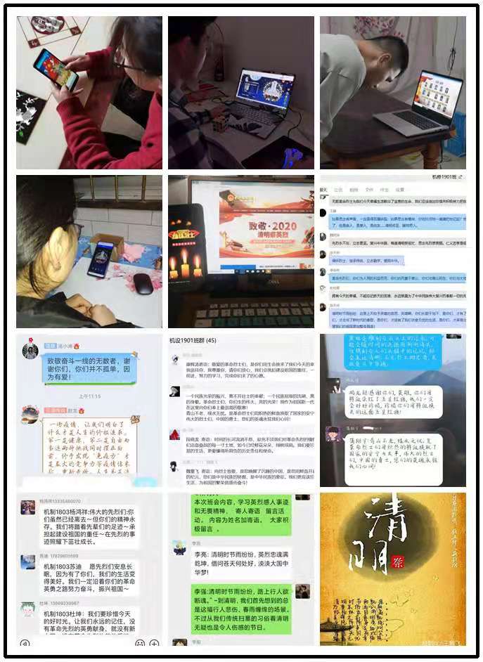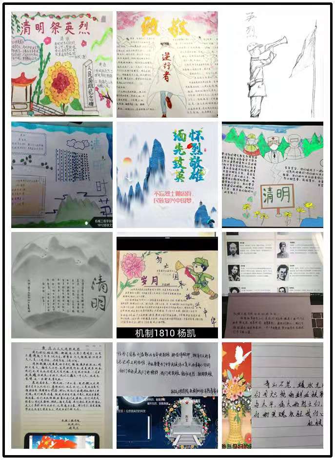清明前后,缅怀故人、寄托哀思是中华民族的传统习俗,组织学生集体“云祭扫”英烈活动也是机械工程学院数年来坚持开展的一项爱国主义教育活动。在今年抗击新冠疫情的特殊情况下,机械工程学院学生希望通过网上祭扫的形式,向为新中国成立和人民幸福生活而英勇献身的烈士们送上最深的思念,传颂英雄的故事,表达对英雄的敬意,大家会把这种怀念和追思转化为建设祖国的使命和行动,凝聚成提升专业技能的磅礴力量,为中华民族的伟大复兴而不懈奋斗。
