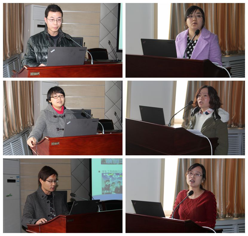 12月17日下午,由宣传教育部、学生工作部主办的2014年“立德树人”论坛系列活动之“我与学生同成长”交流活动预赛在崇文南楼第五会议室举行,全院17个部门的18名同志参加了论坛交流。张勃、王超联、梅创社、朱忠军、高凤香、刘文青、刘清担任评委。