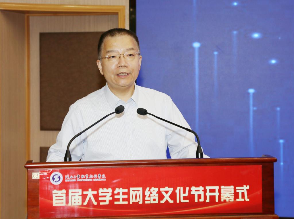 活动以我校学生原创视频《我们的青春不一样》拉开帷幕,同学们用手中的笔、镜头的光、口中的歌和心中的情,呼喊青春宣言,汇聚青春力量。党委副书记田昊解读了网络文化节的品牌内涵,党委副书记、纪委书记康强为文化节项目承办单位授牌。