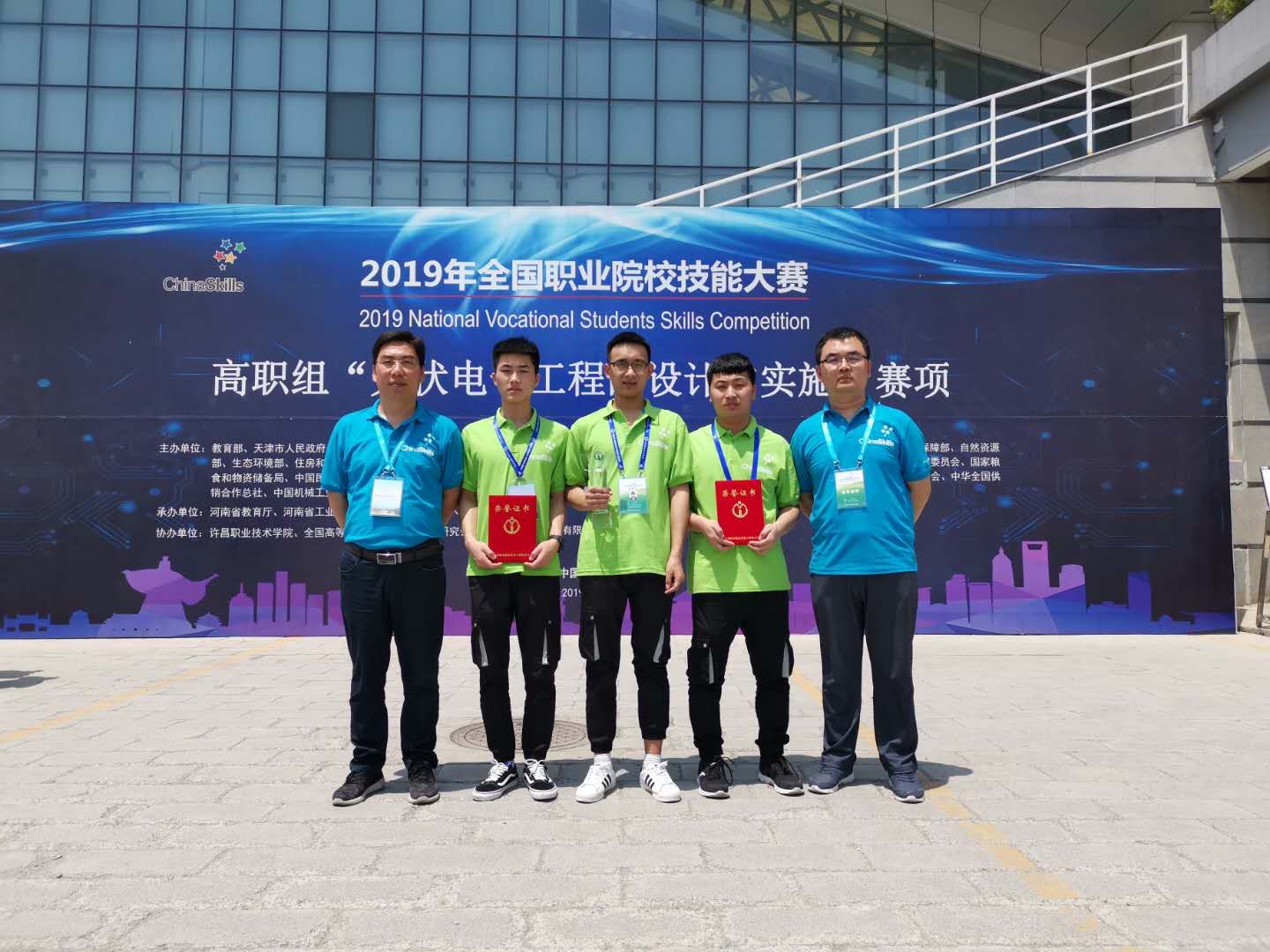 6月1日-4日,2019年全国职业院校技能大赛“光伏电子工程的设计与实施”赛项在许昌职业技术学院举行。由电气工程学院教师胡平、张顺星指导,光伏1601班解钰普、自动化1601班邵永博、自动化1710班严成金三位同学组成的代表队荣获团体一等奖,胡平、张顺星同志获优秀指导教师奖。