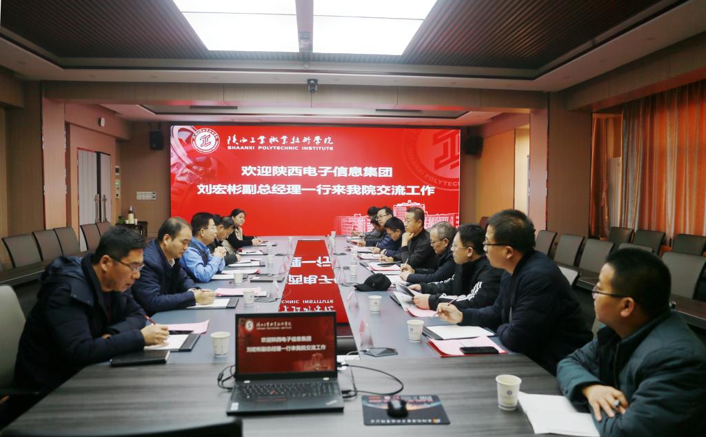党委书记惠朝阳代表学院对刘宏彬副总经理一行的到来表示热烈的欢迎,结合乐游棋牌70年来的办学理念和特色,详细介绍了学校历史沿革、学科特色、科研优势、校企合作等相关内容。并指出,目前国家正在从制造大国向制造强国转变,总书记多次提出要大力发展实体经济,陕西电子信息集团作为国内电子信息百强企业,学校期待与集团深入合作,共同促进校企融合发展,互利共赢。