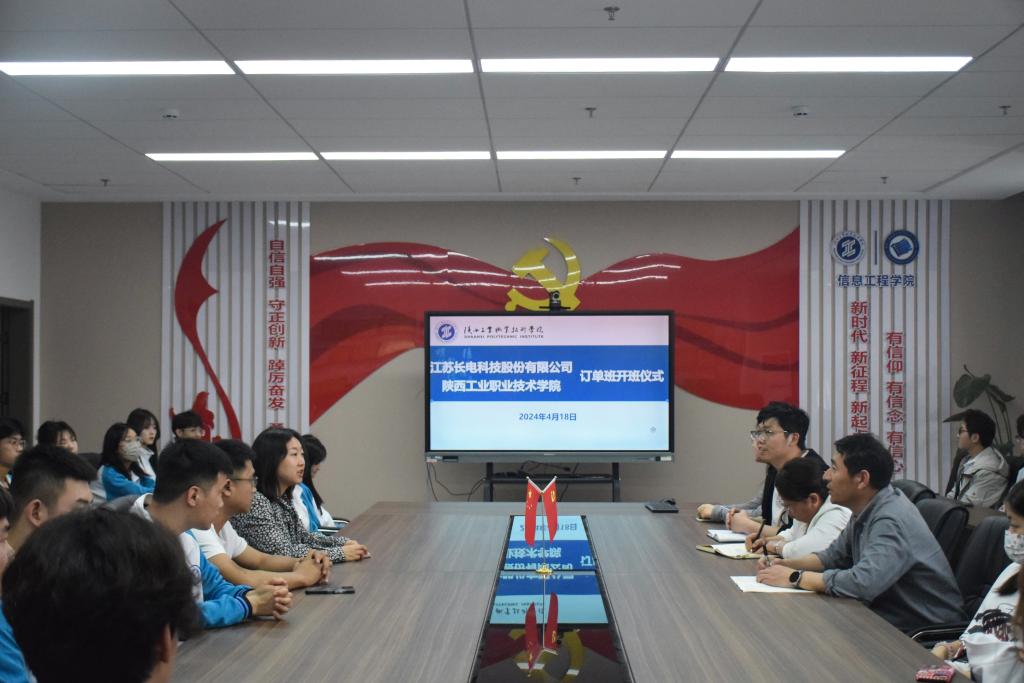 4月18日下午,信息工程学院与江苏长电科技股份有限公司合作组建的订单班开班仪式在崇理楼C801成功举行。江苏长电科技股份有限公司招聘经理高君师、招聘专员尹蕊和信息工程学院院长白国政、党总支副书记郭新玲、实训中心主任吕阿璐、订单班班主任宋国豪及订单班全体学员共同参加了开班仪式。