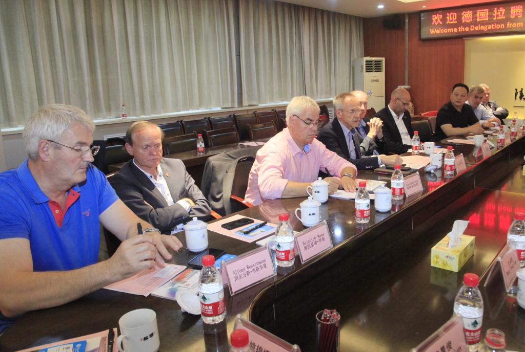 6月20日上午,德国拉腾市市长卡尔?韦伯率领该市政府及企业代表团一行9人在德国陕西商会会长李奇陪同下访问乐游棋牌。代表团成员包括尼德兰根县、苏斯图姆县县长,埃姆斯企业协会负责人、康迪逊机械有限公司等5家企业负责人。党委书记惠朝阳,党委副书记、副院长刘永亮与来宾在崇文楼会议室座谈交流。