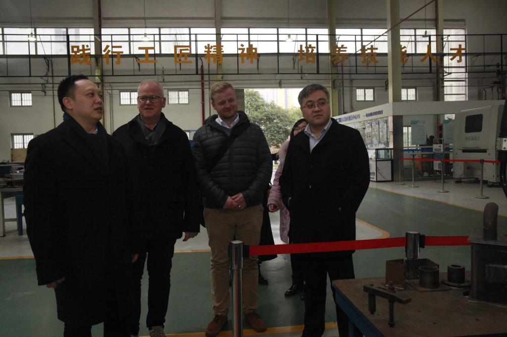 会前,田昊副书记陪同客人参观了乐游棋牌智能制造创新中心、汽车实训中心、模具实训中心、机加工中心、焊接实训中心和欧姆龙实训中心。