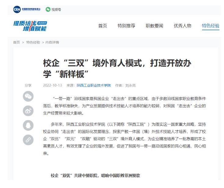 中国教育电视台—校企“三双”境外育人模式,打造开放办学“新样板”