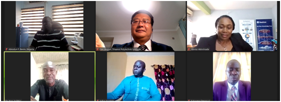 2月28日,应尼日利亚埃多州教育厅邀请,国际教育学院院长秦景俊以视频会议形式,与该州教育厅项目官员Kess Asikhia博士,埃多州理工学院执行院长Eng. Silvester Omoruyi,前院长Abiodun Falodun教授等洽谈交流合作项目。