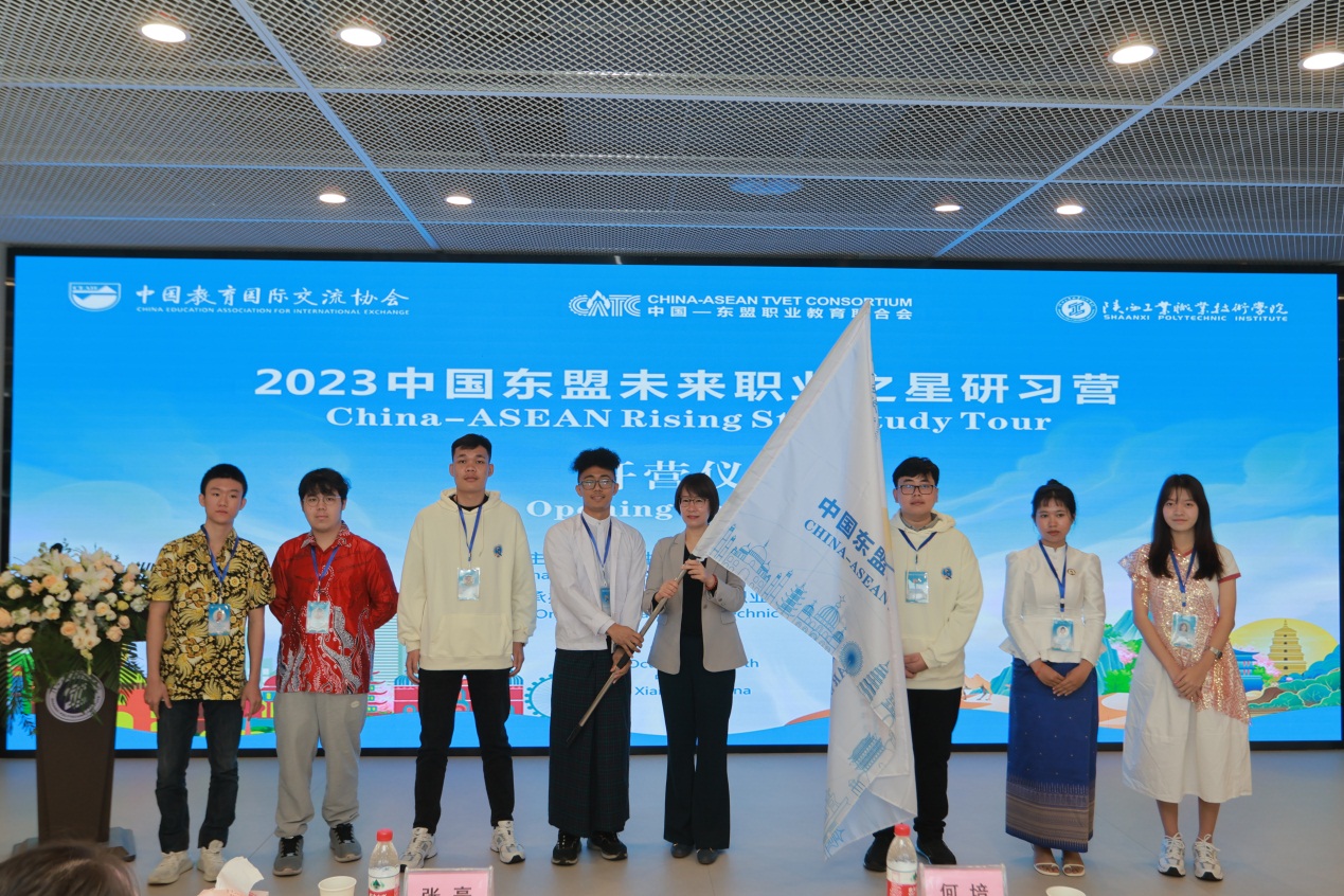 10月9日上午,由中国教育国际交流协会主办,我校承办的2023中国东盟未来职业之星研习营开营仪式在经开校区图文信息中心举行。来自马来西亚、越南、缅甸、泰国、老挝、柬埔寨、印尼等7个国家的32名学员和浙江机电职业技术学院等国内6所高职学校的带队老师齐聚咸阳,开展为期一周的技能学习、文化体验、企业参访等活动。中国教育国际交流协会职业教育与培训部主任何培、省教育厅外事处相关负责同志、校长刘永亮出席本次活动。党委副书记田昊主持仪式。