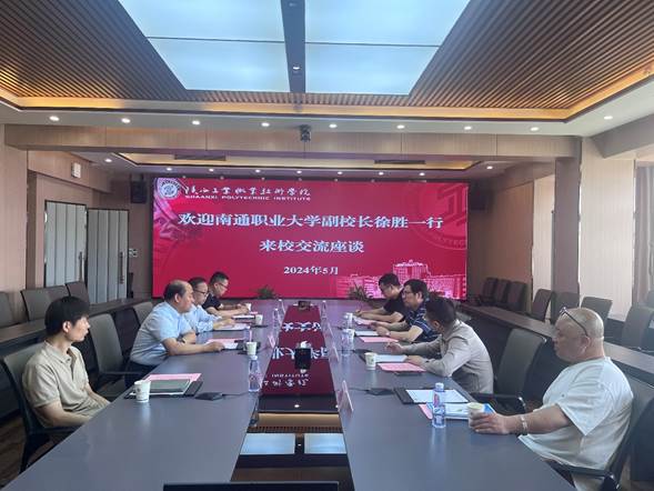 5月12日上午,南通职业大学党委委员、副校长徐胜一行来我校调研交流。我校副校长梅创社,双高办、发展规划处、教务处等部门负责人陪同座谈,会议由副校长梅创社主持。
