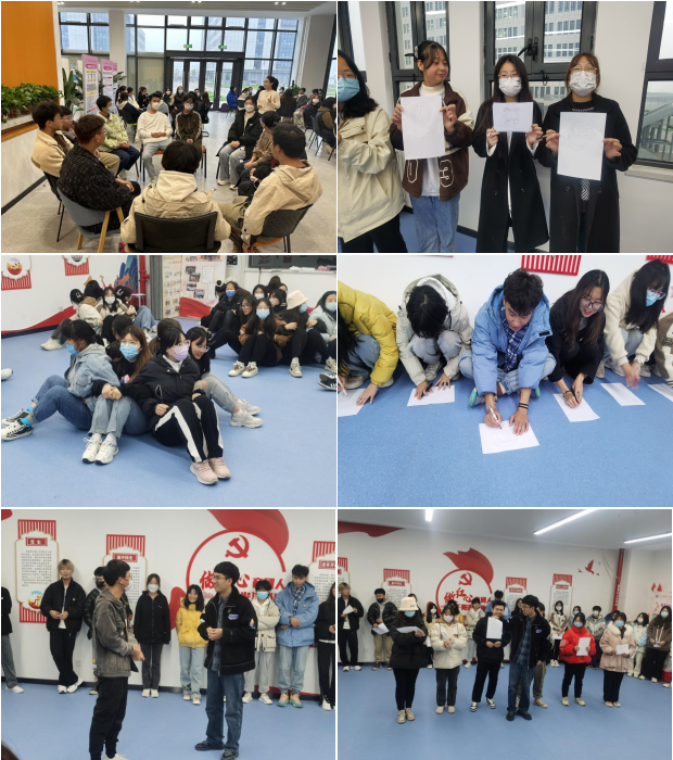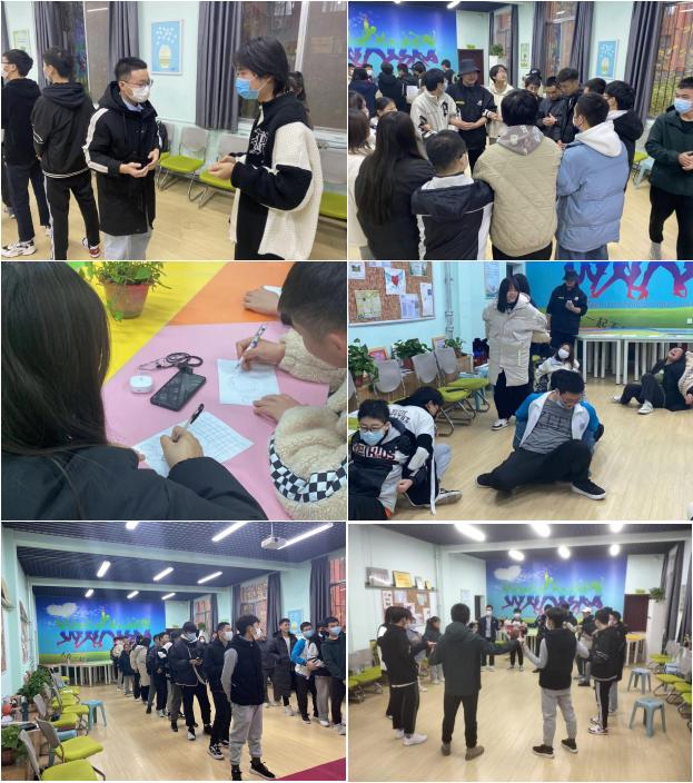 主题为“逆风飞扬,直面压力”的压力管理团辅活动主要从五个环节展开,首先,主持人以“突围闯关”游戏作为热身活动,拉近大家的距离,然后分别从“突围闯关”“成长三部曲”“我说你画”“潮起潮落”四个活动开展,带领同学们从游戏中体验着挫折和成长。在团辅活动结尾,每一名同学填写了“非理性观念自检表”,在老师的带领下,大家学习了情绪ABC理论,学会从新的角度看待生活中遇到的问题,为自己减压赋能。在主题为“携手共进,精彩青春”的人际交往团体辅导活动中,主持人以“乌鸦与乌龟”手指抓逃游戏作为热身活动拉开团辅活动的序幕,在接下来的“桃花朵朵开”“滚雪球”“你画我猜”“千里传音”四个活动环节中,同学们在紧张刺激的游戏过程中体验着团队归属感与幸福感,渐渐摆脱了“社交恐惧”,同时互相交流和沟通、齐心协力,在团队中发挥各自的作用,最终成功完成任务。